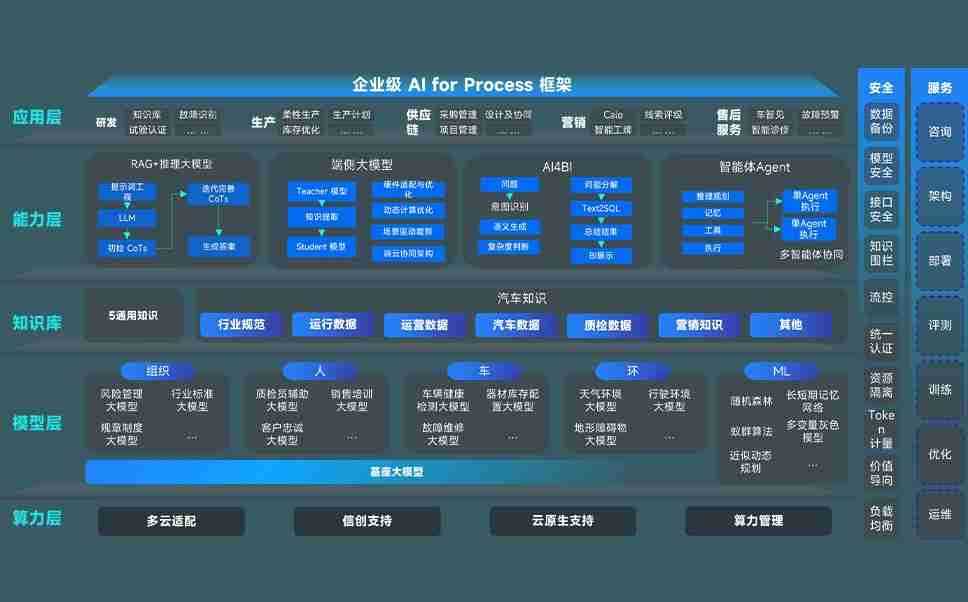 端到端的一站式AI工作空间深度融合了从企业战略规划到日常经营的全流程业务板块,,定向解决车企内部领域多、、、、部门多、、、、链条长、、、、场景碎片化等难题,,,,支持车企快速构建以AI为核心的生产力写作体系,,,实现任务执行与AI能力的无缝集成与交互